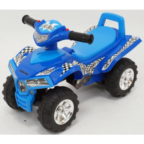 Csodás négykerekű jármű Quad Baby Mix. A csomagolás nem tartalmazza az elemet. 12 hónapos kortól ajánlott. Teherbírás: 23 kg. Az ülőke alatt tárolórekesz a játékoknak. Dudával felszerelt. Attraktív színek. Stabil, minőségi műanyag. Méret: hossz 61 cm, sz