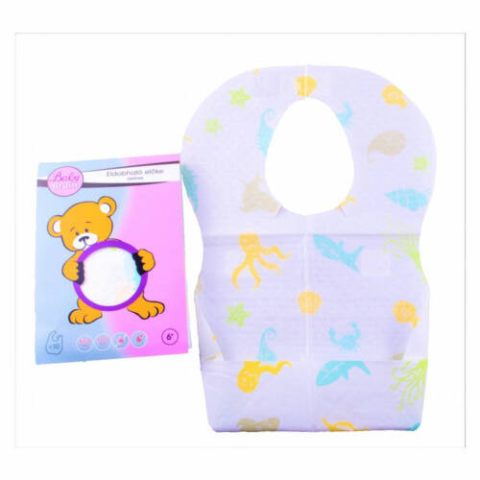 BabyBruin Előke zsebes, eldobható (10 db/cs) Babybruin eldobható zsebes előke (10 db) 10 db-os eldobható előke, morzsafogó zsebbel, öntapadós ragasztóval a könnyű rögzítés érdekében. Anyaga nem szőtt textília, papír és PE vízhatlan filmréteg. Ideális u