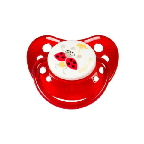BabyBruin Játszócumi Katica, piros szilikon fogszabályzós (méret: 1) 0 - 6 hó Kiszerelés: 6 csomag/karton.BabyBruin fogszabályzós játszócumi (1-es) pirosOrtodontikus kialakítású szilikon játszócumi 0-6 hónapos korig piros színben, katica mintával. Kivá