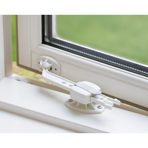 A Baby Dan által kínált ablakzárat úgy tervezték, hogy alkalmas legyen különböző típusú ablakokra. Fel lehet helyezni függőlegesen, vízszintesen, vagy a sarokba és gyakorlatilag minden típusú ablakra. Csavarokkal rögzíthető és olyan magasságba kell elhelyezni, hogy a gyermek ne érhesse el. Műszaki adatok: Súly: 0,100 kg Méretek: 27 x 15 x 4 cm