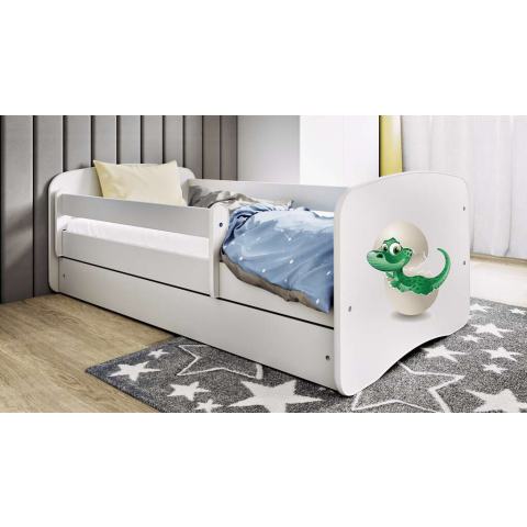 1 kép Babydreams fehér kis dínó ágy fiók nélkül, kókusz matrac 180/80