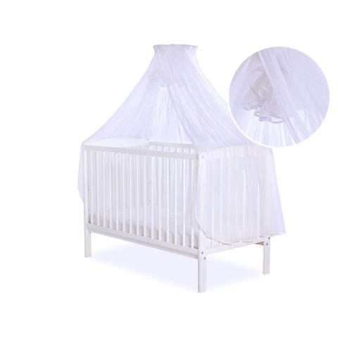 Nagy méretű baldachin függöny 470x160cm. Megvédi a babát és nagyon dekoratívnak tűnik az ágyon a babaszoba részeként. A leghosszabb és legszélesebb, így lehetővé teszi, hogy minden ágyat szorosan lefedjen. Teljes fedést és védelmet nyújtanak a rovarok ell