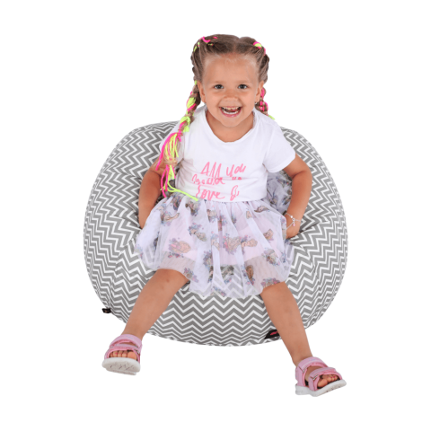 Babzsák, szürkés-fehér/cik cak minta, GOMBY bútor termékleírás