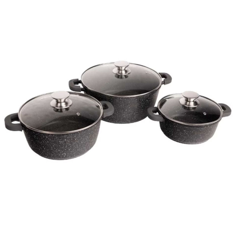 Teljes Bachmayer 3 részes lábas szett fekete mintás márvány bevonattal BM-7874 termékleírás