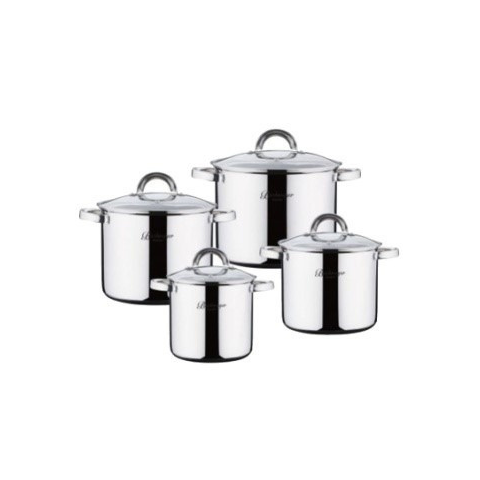 Bachmayer 8 részes nemesacél fazék készlet BM15793 Bachmayer 8 részes nemesacél fazék készlet BM15793 Kiváló minőségű Bachmayer nemesacél 8db-os fazék készlet. Használhatja gáztűzhelyen, villanytűzhelyen, és indukciós főzőlapon egyaránt. A készlet tar