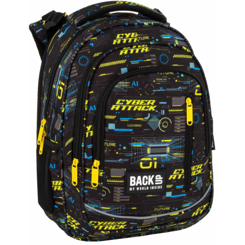 1 kép BackUp fiús iskolatáska – Cyber Attack, fekete-sárga, 39x27x20 cm