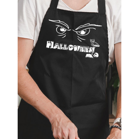 Baglyos kötény, ajándék halloweenre. Kötény halloweenre, bagolyszemekkel, Halloween felirattal és koponyával. Lepd meg Te is Halloween mániás barátod, rokonod egy feliratos köténnyel. Mérete 66x78 cm. Anyaga vászon. Egyedi mintával ellátott kötényünk p