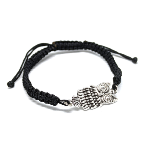 Baglyos makramé karkötő, fekete karkötő 1 kép