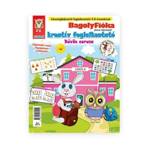 Nyuszi és a Kisbagoly is az iskolába készülnek. A Bűvös ceruza készségfejlesztő foglalkoztató tökéletes segítséget nyújt az 5-8 éveseknek is az iskolára való felkészüléshez. Útvesztő, mennyiségi reláció és különbségkereső feladatokkal ügyesíti a kezeket é