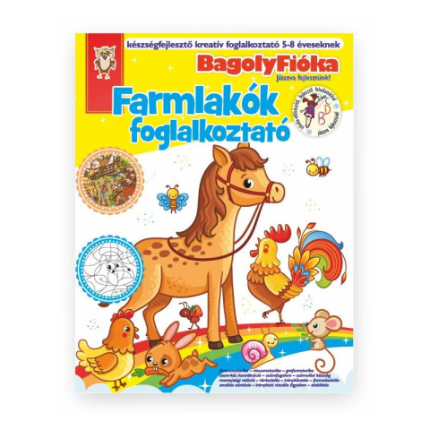 A Bagolyfióka – Farmlakók foglalkoztató füzetben biztosan minden gyerkőc talál kedvére valót. A feladatok az összes farmon lakó állatot felvonultatják. A kicsik együtt oldhatják meg a játékos és fejlesztő feladatokat a bocikkal, kiscsikóval, a nyuszival,
