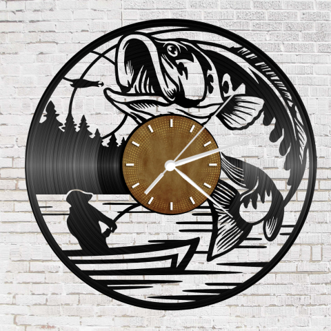 Egyedi, gravírozható bakelit falióra - tökéletes ajándék ötlet horgászoknak. Sügér halat formáló dizájnja különlegesen kreatív és stílusos. Ünnepeld meg ezzel!
