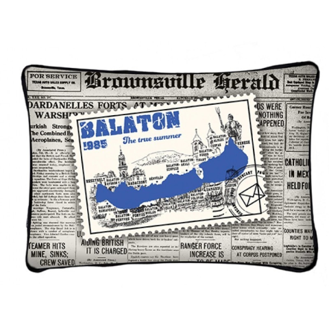 Balaton díszpárna, bélyeg és újság 37 x 27 cm Anyaga: polyester Mosógépben mosható, színe nem fakul és nem kopik.