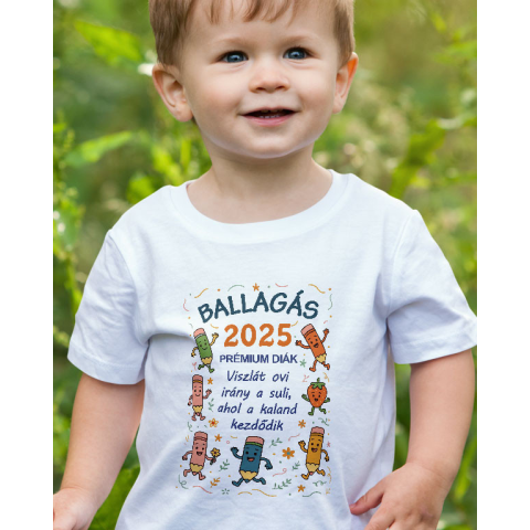 Ballagási ajándék gyerekeknek, ovis gyerek póló. Egy különleges, vidám és maradandó ajándék kisgyermekeknek óvodai ballagásra! Ez a cuki gyerek póló aranyos ceruzákkal díszített Viszlát ovi, irány a suli, ahol a kaland kezdődik felirattal, választható év