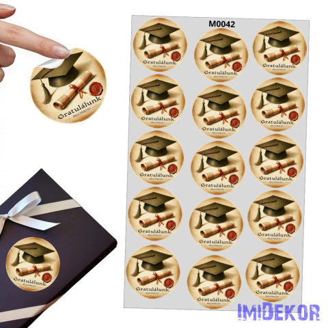 Ballagási kerek matrica - Gratulálunk 15db/lap dekorációs kellék árgrafikon