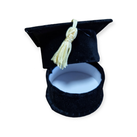 Jellemzői: ballagási, diplomaosztó fekete bársony kalap doboz, bojttal méretek: kalap karima: 7cm, kalapalsó rész: 5 cm, magasság: 3 cm Kalap alsó rész formája: kör ajándékot, ékszert helyezhetünk bele, dekorációnak, kreatív és hobbi felhasználásra Ideá