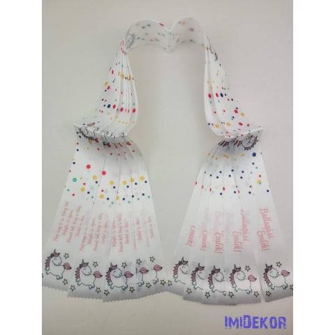 1 kép Ballagási szalag 5 cm - Fehér vidám unikornis