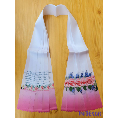 1 kép Ballagási szalag 6 cm - Fehér-rózsaszín rózsamintával