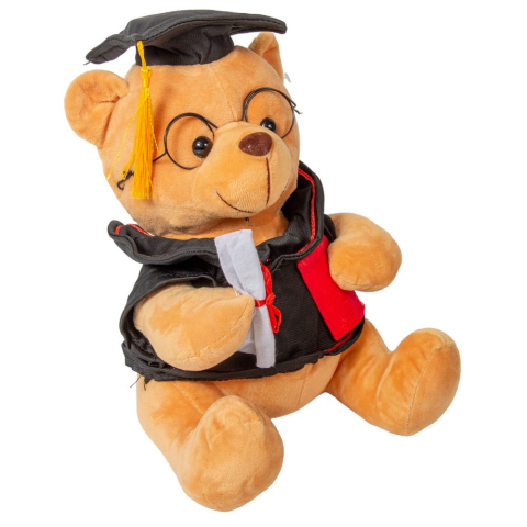 Ballagói plüss maci szemüveges 27cm dekorációs kellék árgrafikon