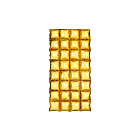 Arany színű léggömb fólia háttér. Méretek felfújás előtt kb. 72x143 cm. Méretek felfújás után 55x110 cm. Levegővel felfújni. A készlet egy szívószálat tartalmaz.