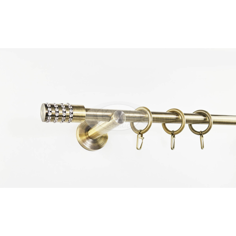 1 kép Baltimore óarany színű 1 rudas strasszköves fém függönykarnis szett modern tartókkal