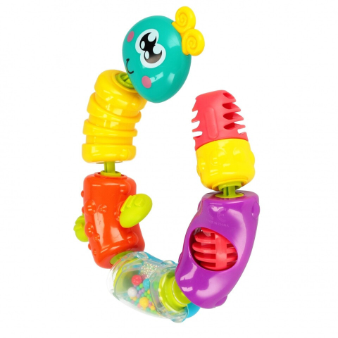 A hernyó interaktív játék 6 színes kockából áll, amelyek különböző módon kombinálhatók. Mérete 17 x 20 x 5 cm.