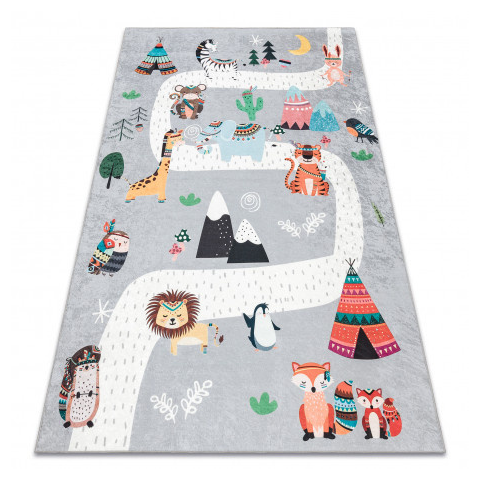 1 kép BAMBINO 2160 mosható szőnyeg Indián falu, állatok gyerekeknek csúszásgátló - szürke 80x150 cm