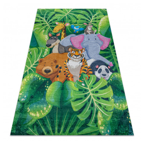 BAMBINO 2651 mosható szőnyeg Állatok, dzsungel gyerekeknek csúszásgátló - zöld / barna 120x170 cm lakástextília termékleírás