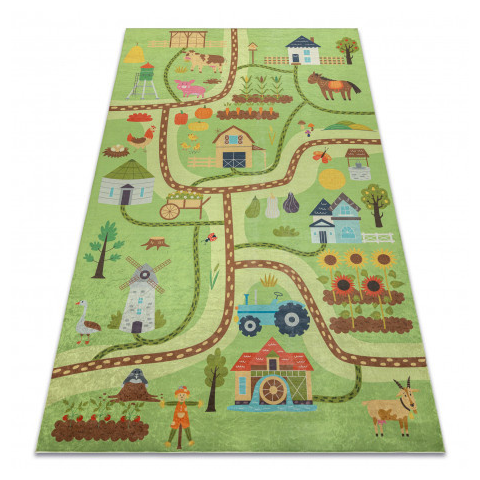 BAMBINO 50200 mosható szőnyeg Falu gyerekeknek csúszásgátló - zöld / barna 80x150 cm lakástextília termékleírás