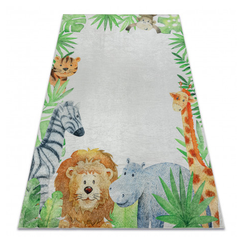 BAMBINO 54090 mosható szőnyeg Állatok, Afrika gyerekeknek csúszásgátló - fehér / zöld 120x170 cm lakástextília termékleírás