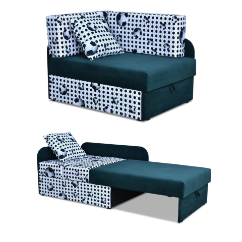 1 kép Bambino gyerek sarokkanapé, kihúzható konténer, gyerekágy, Kubuś matrac