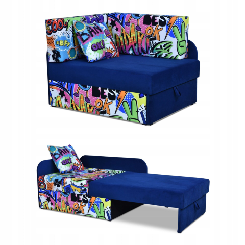 1 kép Bambino gyerek sarokkanapé, kihúzható konténer, gyerekágy, Kubuś matrac