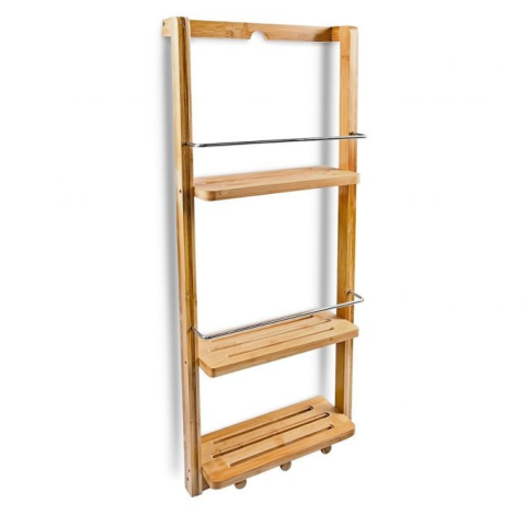 Fürdőszoba polc az ajtóra akasztható A bambuszból készült akasztós polccal több tárhelyet és rendet biztosíthatsz a fürdőszobában. A 3 polcon mindig kéznél vannak samponos és lotionpalackok, krémek, kozmetikumok és még sok más. Törülközők, törlőkendők vag
