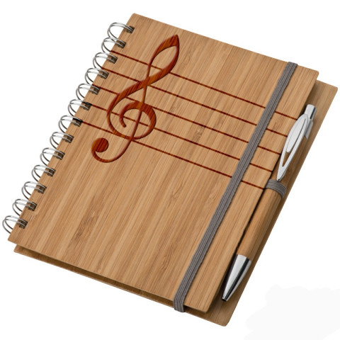 A5 méretű bamusz fedelű füzet hangjegy mintával a fedelén. Környezettudatos szerettünknek praktikus ajándék ötlet.