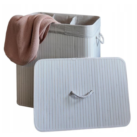 1 kép Bambusz Szennyeskosár - fehér - 150 Literes - Kivehető Béléssel + AJÁNDÉK
