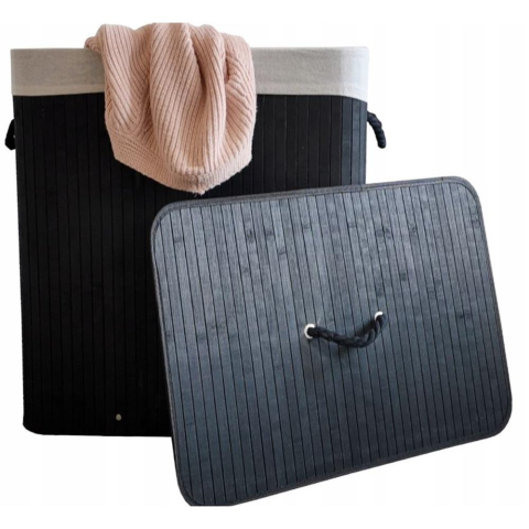 1 kép Bambusz Szennyeskosár - fekete - 150 Literes - Kivehető Béléssel + AJÁNDÉK