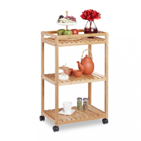 Bambusz tálaló zsúrkocsi 3 szintes 77x47x32,5 cm bútor termékleírás