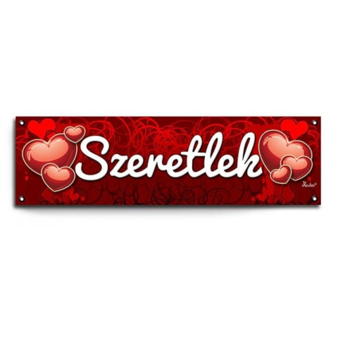 Banner, party felirat, szeretlek. Mérete: 100 x 30 cm Anyaga: vékony PVC, kültérre is megfelelő A lyukakba zsinór fűzhető a felakasztáshoz.