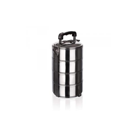 Banquet Ételhordó 4 részes rozsdamentes 48220004 - 4 féle készétel tárolására, hordozására alkalmas - 4db acél tálkát tartalmaz melynek mérete 12,5x5,7cm - Anyagának köszönhetõen rövid ideig a meleget is tárolja - Anyaga: rozsdamentes acél - Ûrtartalom: 4x0,7 liter - Méret: 28x12,5cm