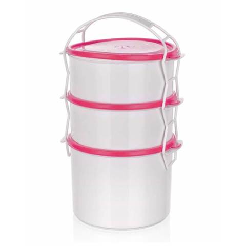 BANQUET APETIT műanyag ételhordó, 3 részes 55079901 BANQUET APETIT műanyag ételhordó, 3 részes 55079901 A 3 részes műanyag ételhordó 2 x 1 literes és 1 x 1,5 literes tárolóedényekkel rendelkezik, ideális ételek szállítására és tárolására. Az egyes edé