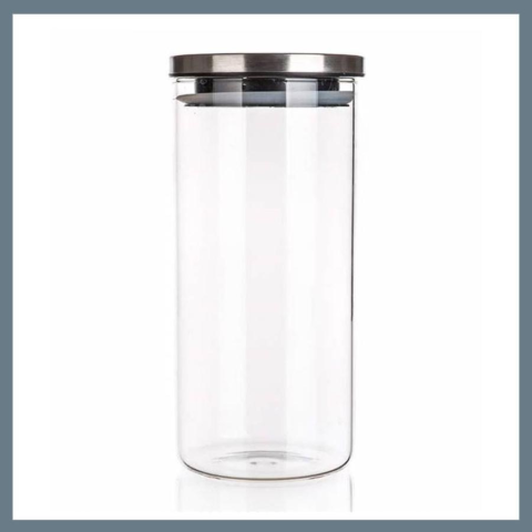 BANQUET FREIA Üveg Tárolóedény, 1450 ml, Fedővel 04303039A BANQUET FREIA üveg tárolóedény praktikus és elegáns megoldás különféle élelmiszerek tárolására. 1450 ml-es kapacitásának köszönhetően ideális nagyobb mennyiségű száraz élelmiszerek, például liszt, cukor, kávé, tea vagy tésztafélék frissen tartására. A biztonságosan záródó tető megőrzi az ételek aromáját és frissességét, míg az átlátszó üveg lehetővé teszi a tartalom gyors áttekint