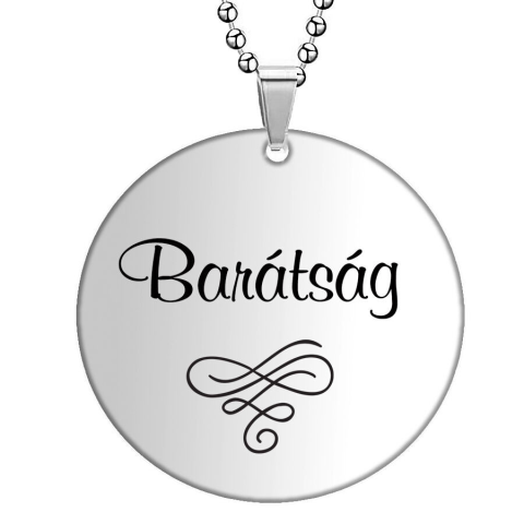 Választható rozsdamentes alumínium medál, vagy nemesacél tükörpolírozott kivitel is, arany vagy ezüst színekben. Az alapár az alumínium medálra vonatkozik lánccal vagy kulcstartóval együtt (válassz a listából, vagy rendeléskor írd be