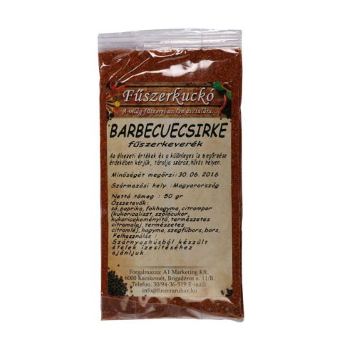A Barbecue csirke fűszerkeveréket szárnyashúsból készült ételek ízesítéséhez ajánljuk. A Barbecue csirke fűszerkeverék földimogyorót, diót, zellert, mustármagot és szezámmagot is feldolgozó üzemben készült. Fűszerek, fűszerkeverékek gasztro kiszerelé