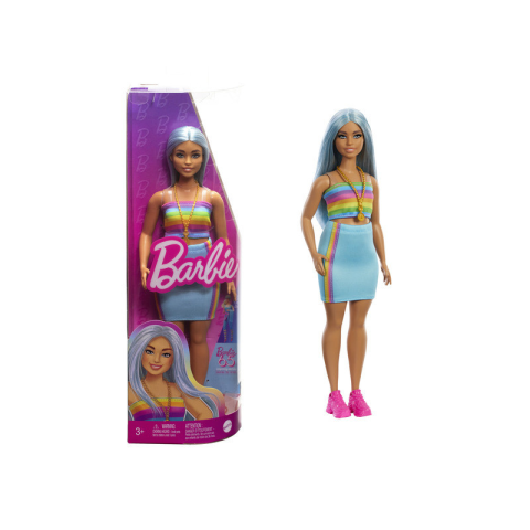 Barbie 65. Évfordulós baba szivárványos topban