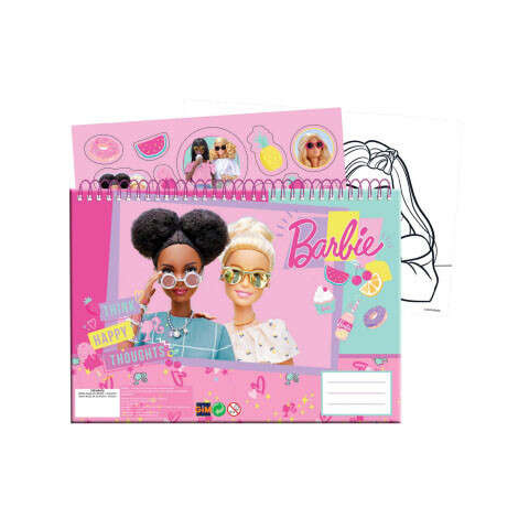 Barbie Happy Thoughts A/4 spirál vázlatfüzet 40 lapos matricával-Gyerekruha, Játékok & Kiegészítők | Sandori.hu – Gyors Szállítás-1104-Barbie spirál vázlatfüzet, 40 lapos1 ív matricával és 3 db színezhető képpel!Méret: A/4 (23x33cm)
