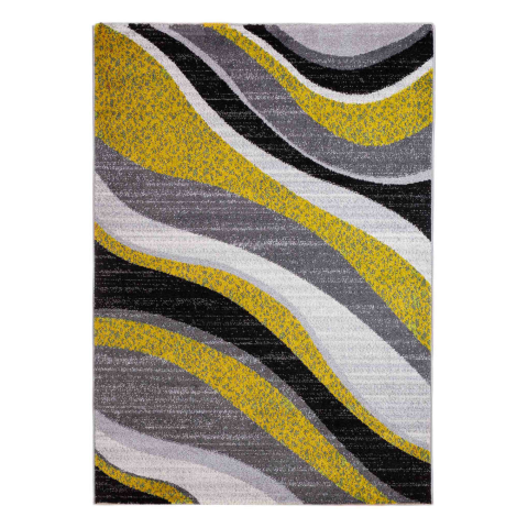 Modern hullám mintás szőnyeg - 160x230 cm - Vidám sárga, szürke és fekete színben 🟡⚫⚪ Ez a modern, fiatalos szőnyeg feldobja otthonod hangulatát! A sárga, szürke és fekete hullám mintája stílusos és elegáns megjelenést kölcsönöz a helyiségnek. Ki...