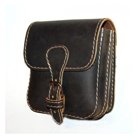 Dupla fakkos bőr övtáska, valódi marhabőrből. Elején csattal, szélein díszvarrással. Hátulján 2 db bőr bújtató az övhöz való felfogatáshoz. Magyar bőrdíszműves termék, kézzel készült. A színárnyalat eltérhet a képen látottól. Külső mérete: 12,5 x 14 x 5