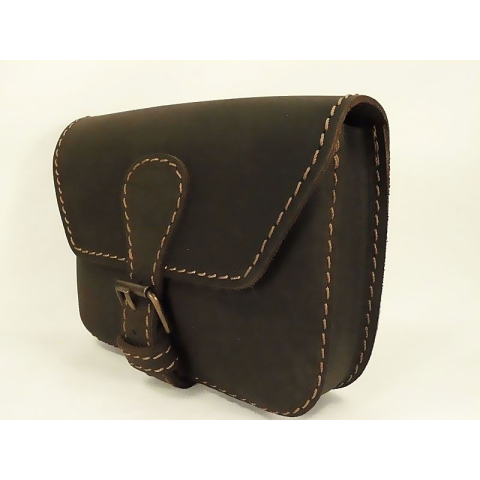 Valódi marhabőr övtáska, Magyar Kézműves Termék. Valódi marhabőrből, díszvarrással. Hátulján 2 db bőr bújtató az övhöz való felfogatáshoz. A színárnyalat eltérhet a képen látottól. Egyfakkos, csatos zárral. Külső méretek: 16 x 12 x 3,5cm