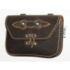 1 kép Barna bőr övtáska, egyfakkos, horgas csatos, kék kővel