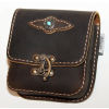1 kép Barna bőr övtáska, egyfakkos, horgas csatos, kisebb, kék kővel