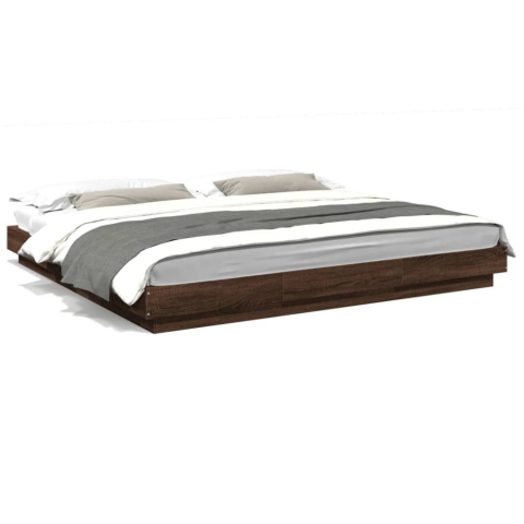 1 kép barna tölgy színű szerelt fa ágykeret LED-del 200 x 200 cm